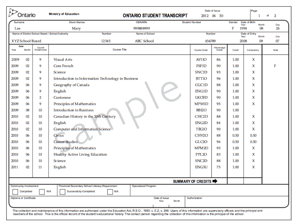 • Ontario School Transcript (OST)