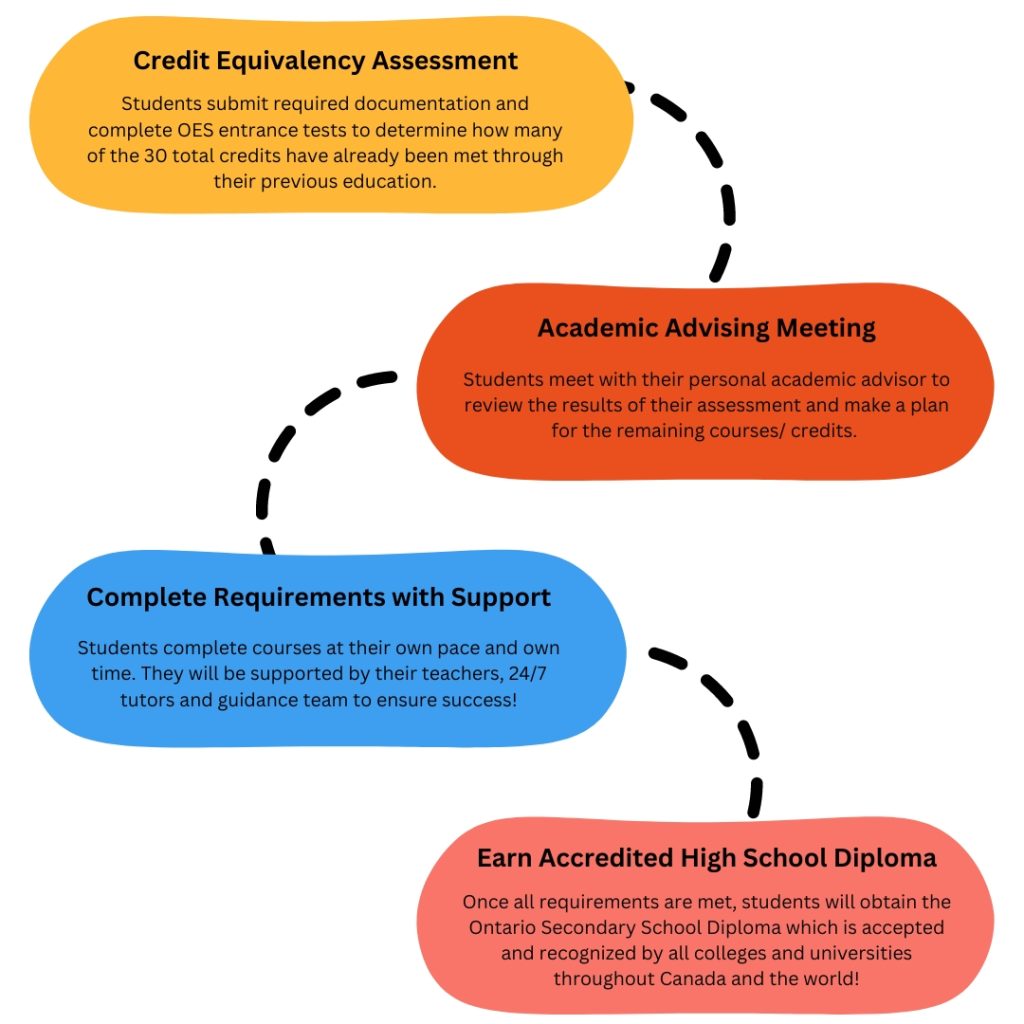 Whether students are taking courses to pursue the Ontario Secondary School Diploma (OSSD) or they need professional support with particular subjects, pathways can be created and tailored to meet every student’s needs. Students can enroll on a part time or full time basis and take the lead on their learning!